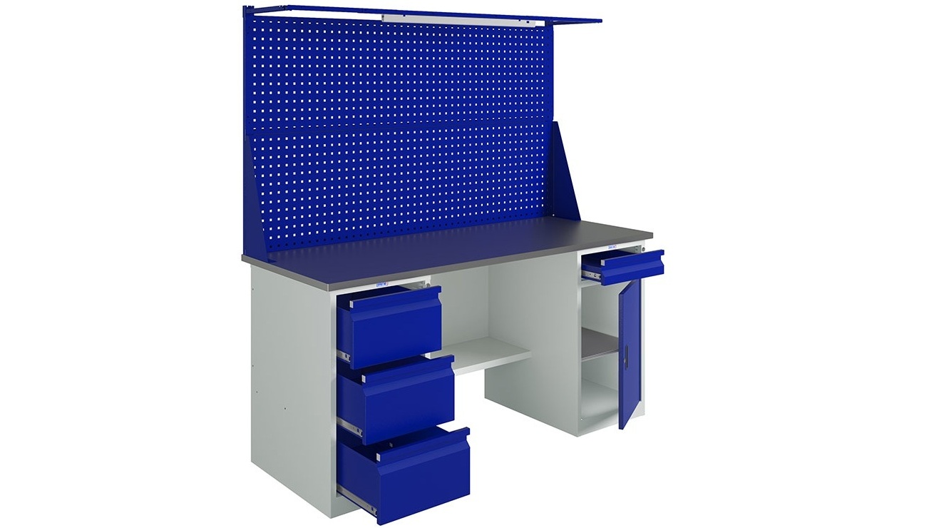 Это совсем другое дело: тут речь идёт о починке и сборке приборов, машин и всего, что в наше время делается из металла, вплоть до микросхем. На бедный верстак льются масла и растворители, летят искры, а иногда водружаются тяжёлые и габаритные детали и устройства, нуждающиеся в «лечении». Такие модели, можно сказать, с ног до головы одеты в металл. Поверхность надёжно защищена листом оцинкованной стали и не боится никаких технических жидкостей. Поцарапать или прорезать её тоже надо постараться, поэтому она куда дольше прослужит вам, сохраняя при этом аккуратный вид.