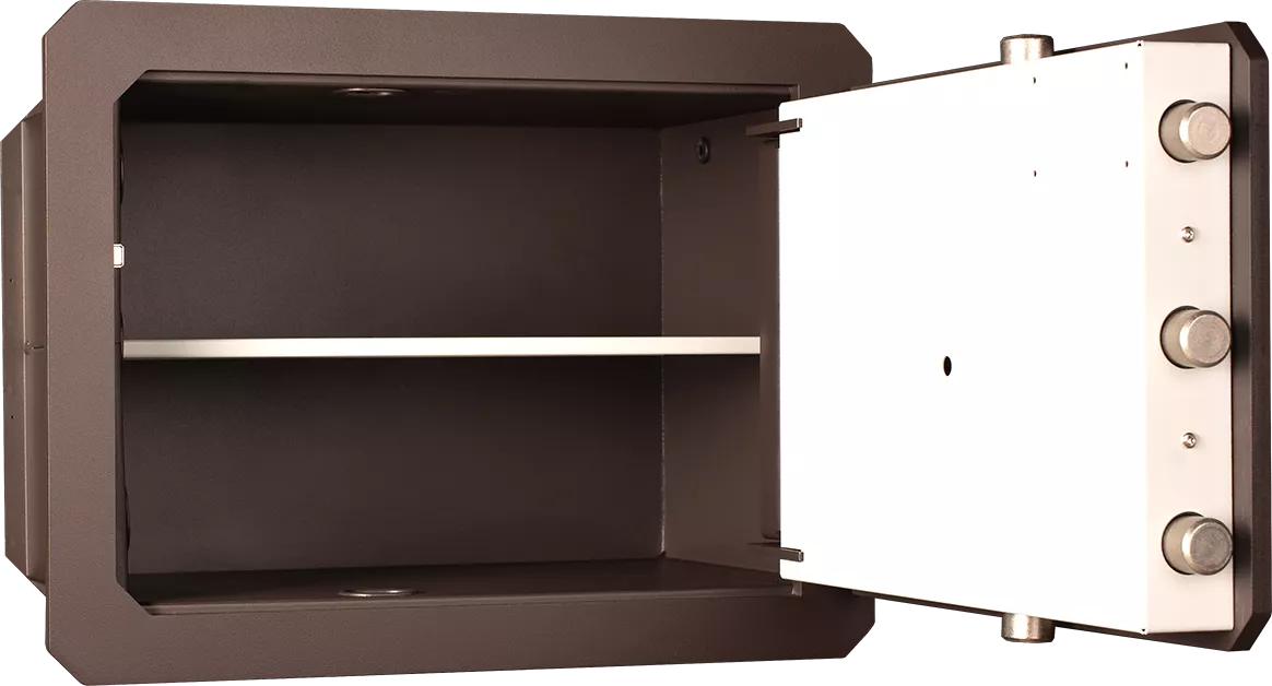 Дверь сейфа подвешена на внутренних петлях, что успешно препятствует её срезанию путём распиливания петель, и распахивается на угол 90°, предоставляя владельцу полный обзор содержимого.